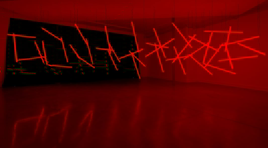 Elle crée une tension visuelle entre la forme anamorphosée et la lumière qui, en se réfléchissant de manière irrégulière sur les murs adjacents, perturbe la perception de l’architecture et en modifie la lecture.