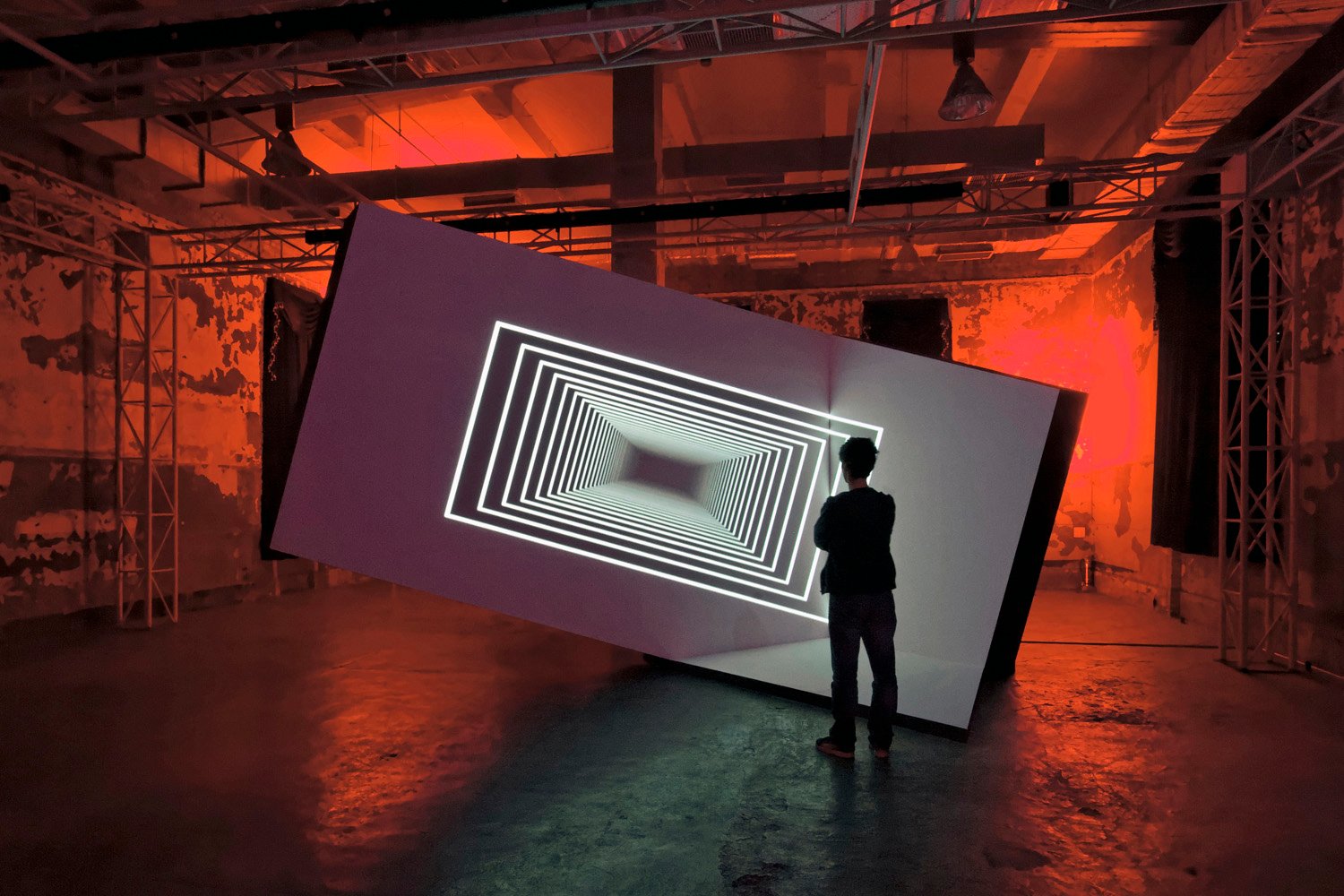 Les spectateurs sont libres de se déplacer dans cette structure et de choisir leur point de vue, quelle que soit leur position dans l’espace.
