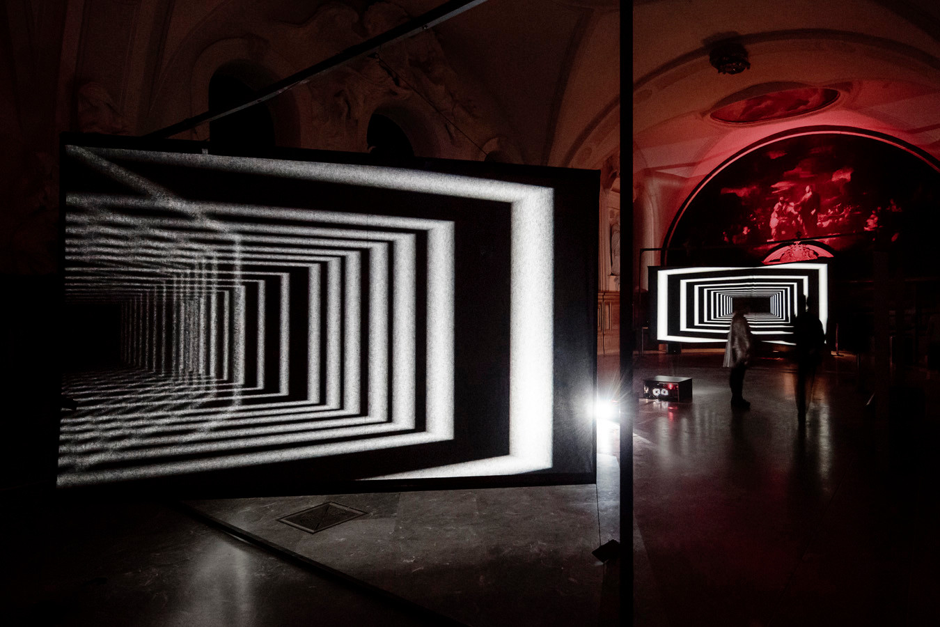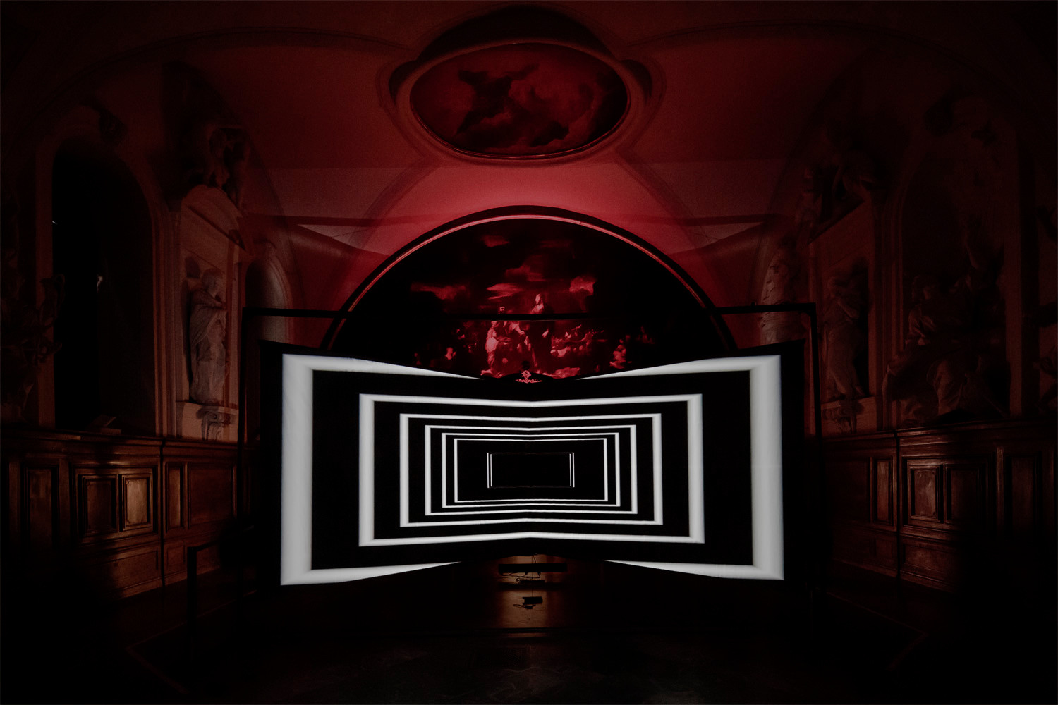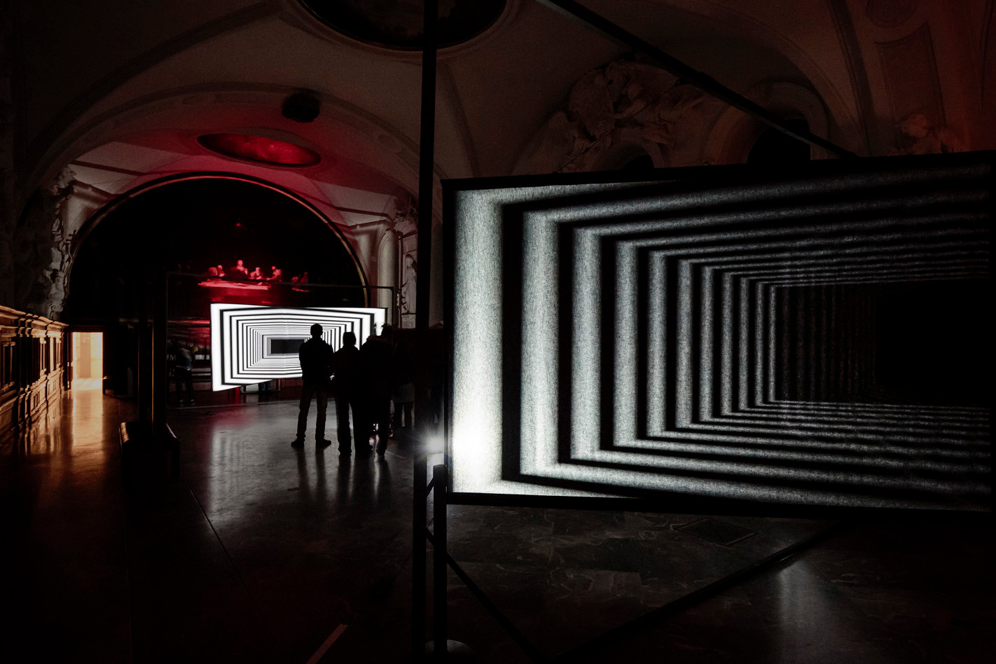The illusion of depth generates a similar effect to “wormholes,” evoking the possibility of the existence of space-time tunnels, which could be seen as a reference to quantum physics.