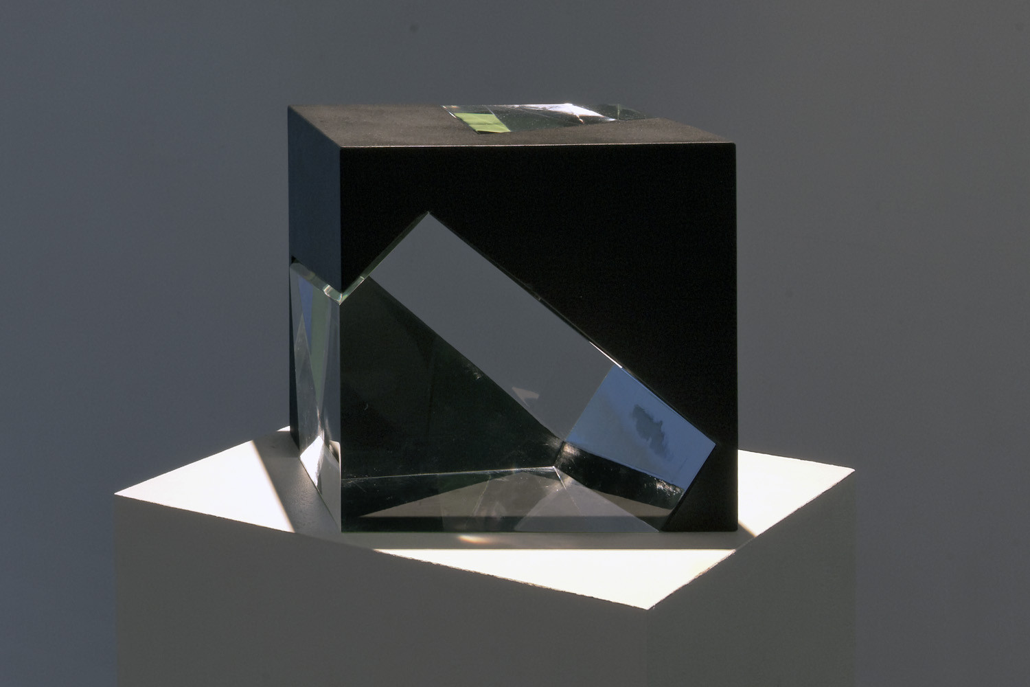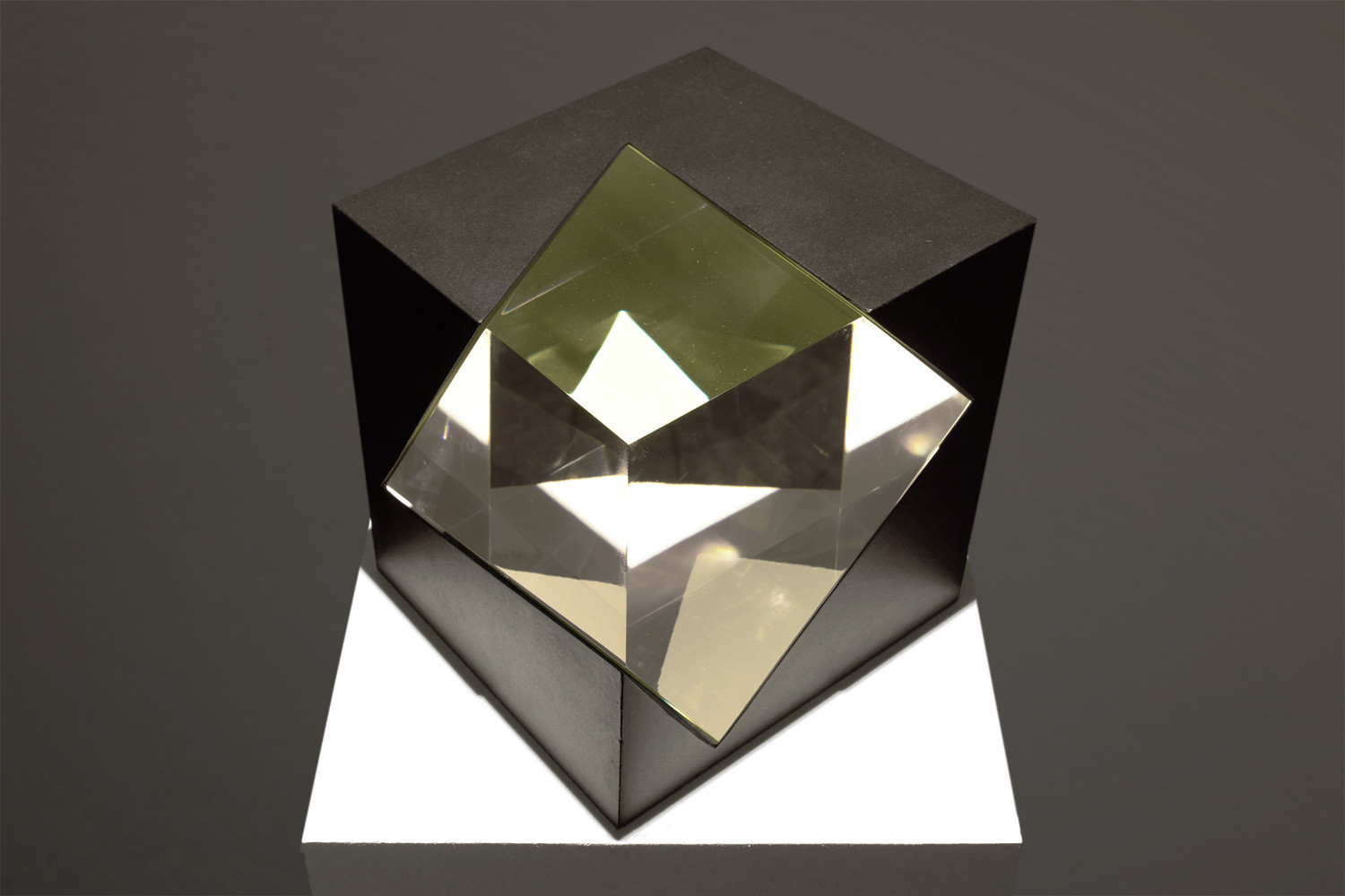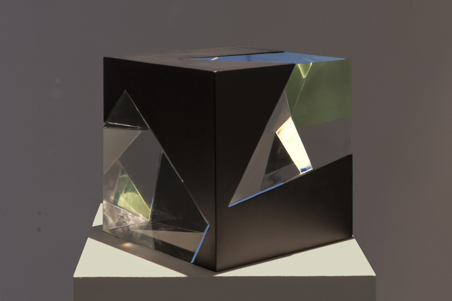 Perspicere, square 1.1, 1.2 and 1.3 (Polycarbonate, wood, painting - size: 20 x 20 x 20 cm)