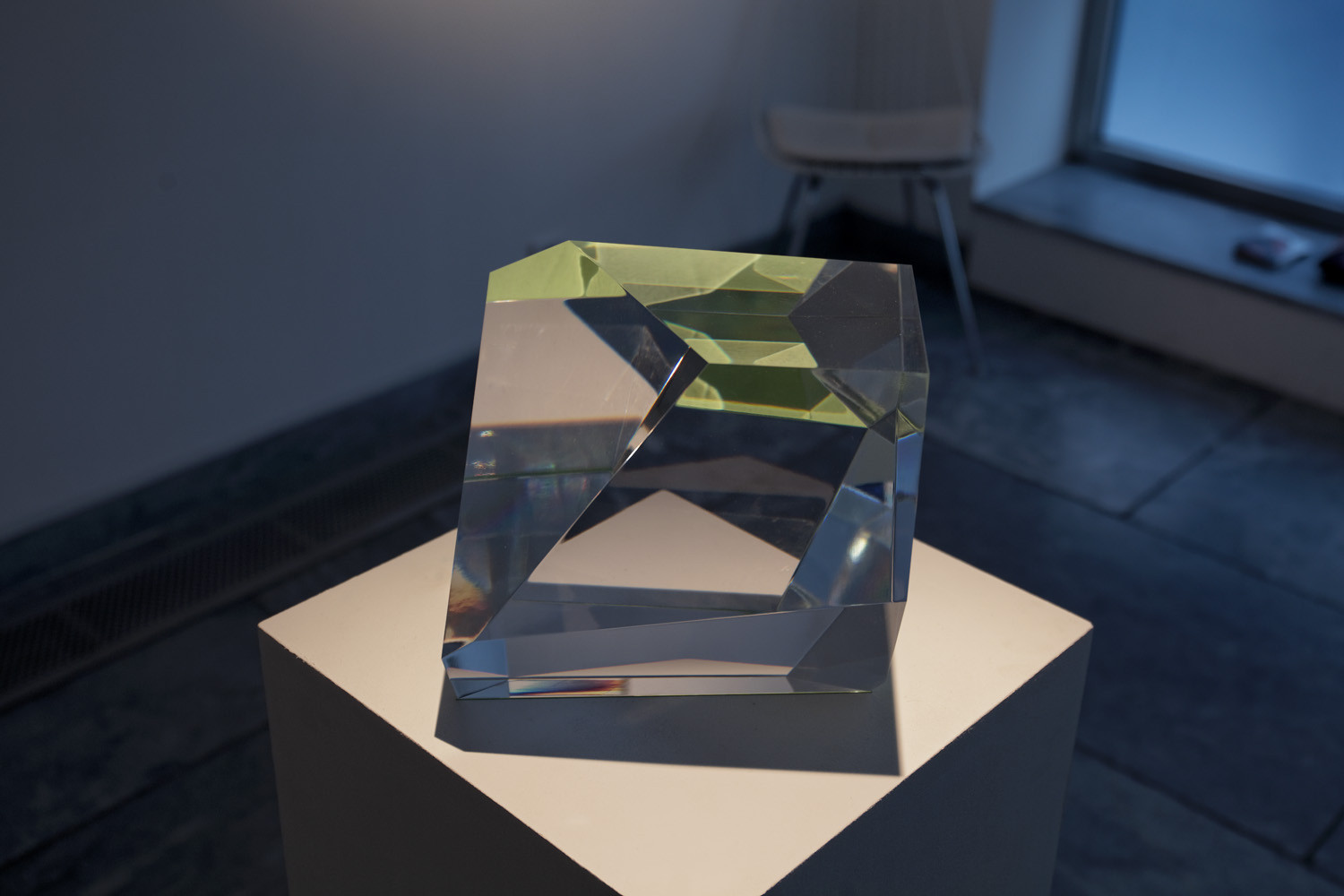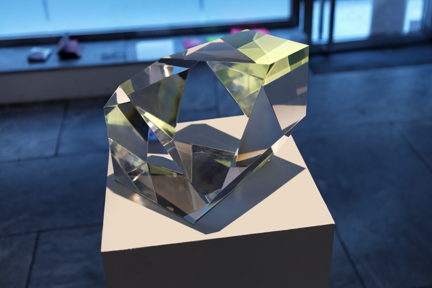 Dans Perspicere, l’alignement s’effectue entre la lumière émanant de l’objet et les yeux des spectateurs, amenant à une lecture informative à la fois sur l’objet et sur notre perception de celui-ci.